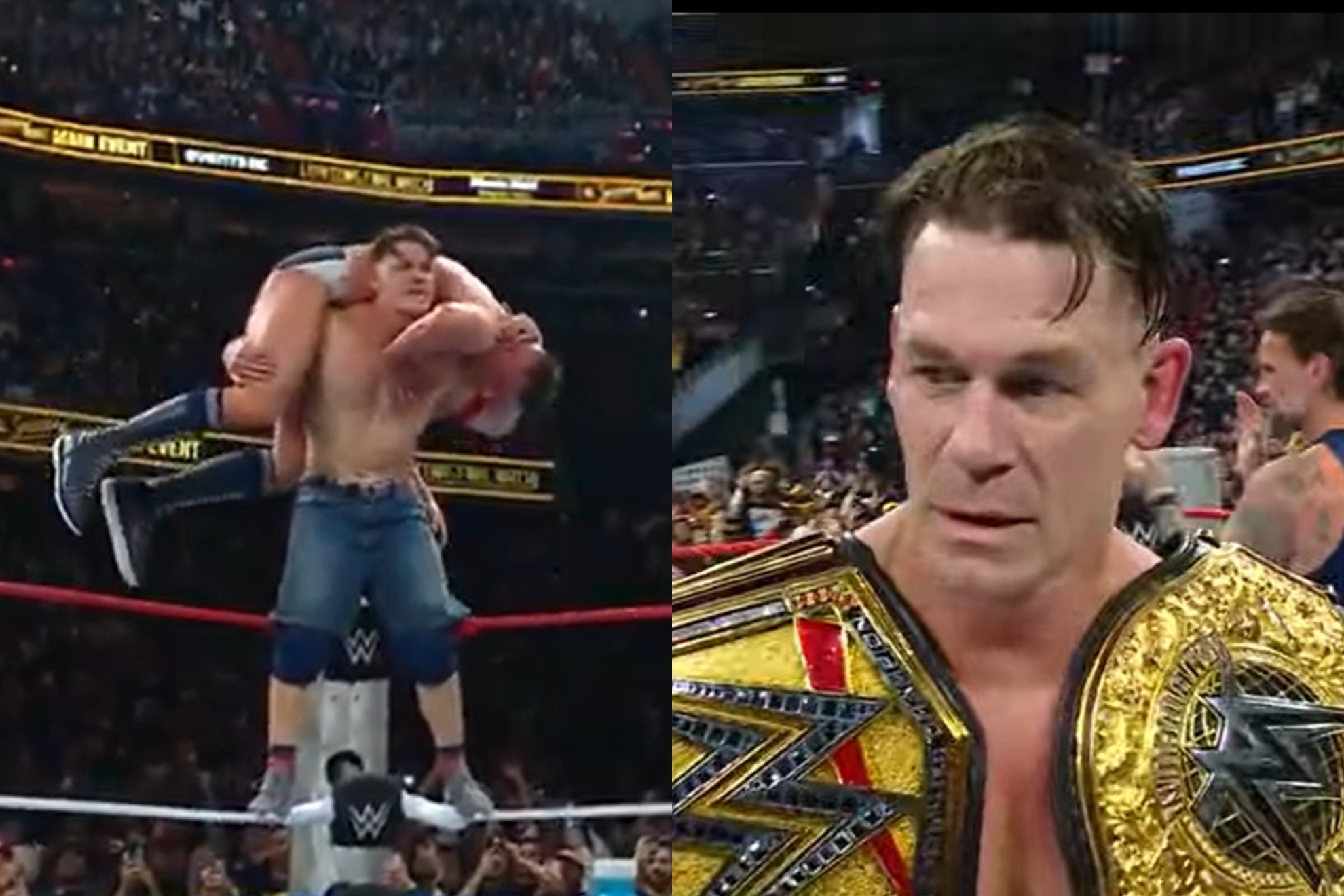 El 17 veces campeón del mundo (récord histórico), John Cena, subió al ring en medio de una gran ovación, pocas veces en el mundo de la WWE se ha visto un recibimiento como el que el 'The Marine' se llevó esta noche en el Capital One Arena para después comenzar con sus clásicos movimientos arriba del ring y con el 'Súper Ajuste de las Alturas' tod parecía indicar que se iría de la Lucha Libre con una victoria.