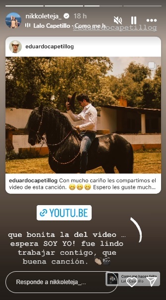 En su cuenta de Instagram, Teja reposteó en una storie el post de Capetillo con los detalles de esta canción. Además, escribió "Qué bonita la del video... ¡espera soy yo! Fue lindo trabajar contigo, qué buena canción".