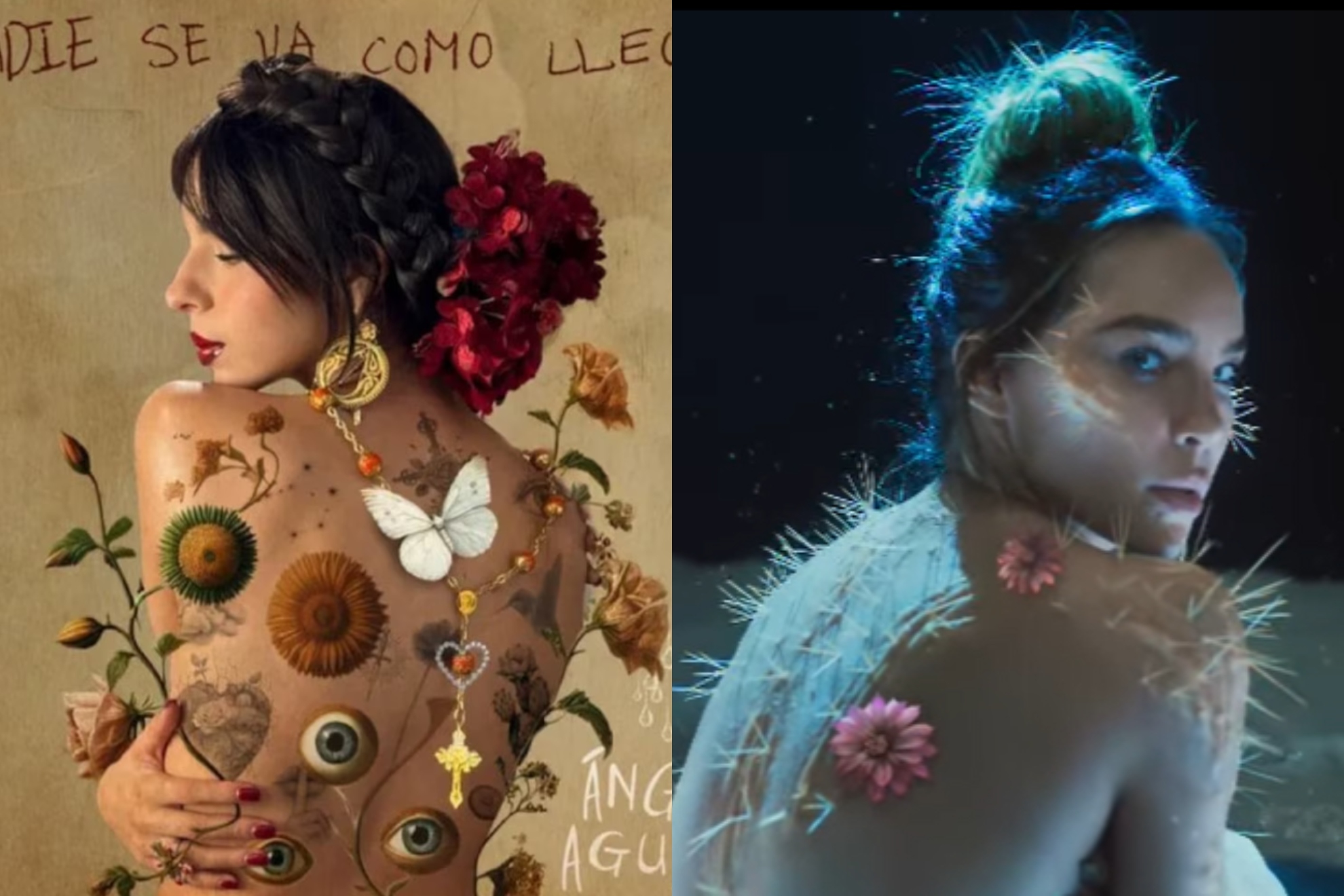 Es importante destacar que en el video de Belipop también se ve con la misma pose y de perfil, llena de flores y espinas haciendo referencias a los cactus, las plantas favoritas del sonorense y aquí te dejamos las semejanzas.