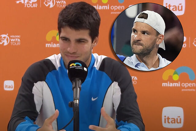 Masters 1000 de Miami Alcaraz, resignado tras perder ante Dimitrov: "Me ha hecho sentir como si tuviera 13 años..." Redacción: JOSÉ LUIS ALLEGUE 127 comentarios Alcaraz, resignado tras perder ante Dimitrov: "Me ha hecho sentir como si tuviera 13 años..."