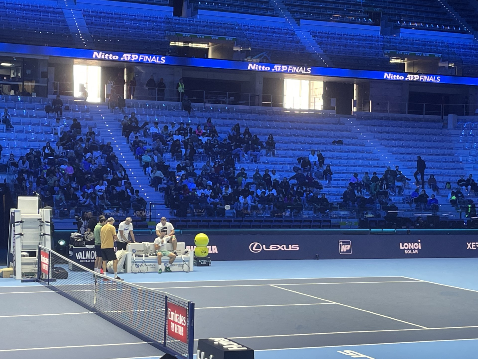En los otros 60 minutos, ya en una central del Alpitour repleta de aficionados deseosos de ver a los dos mejores tenistas del circuito, se simuló una especie de partido.